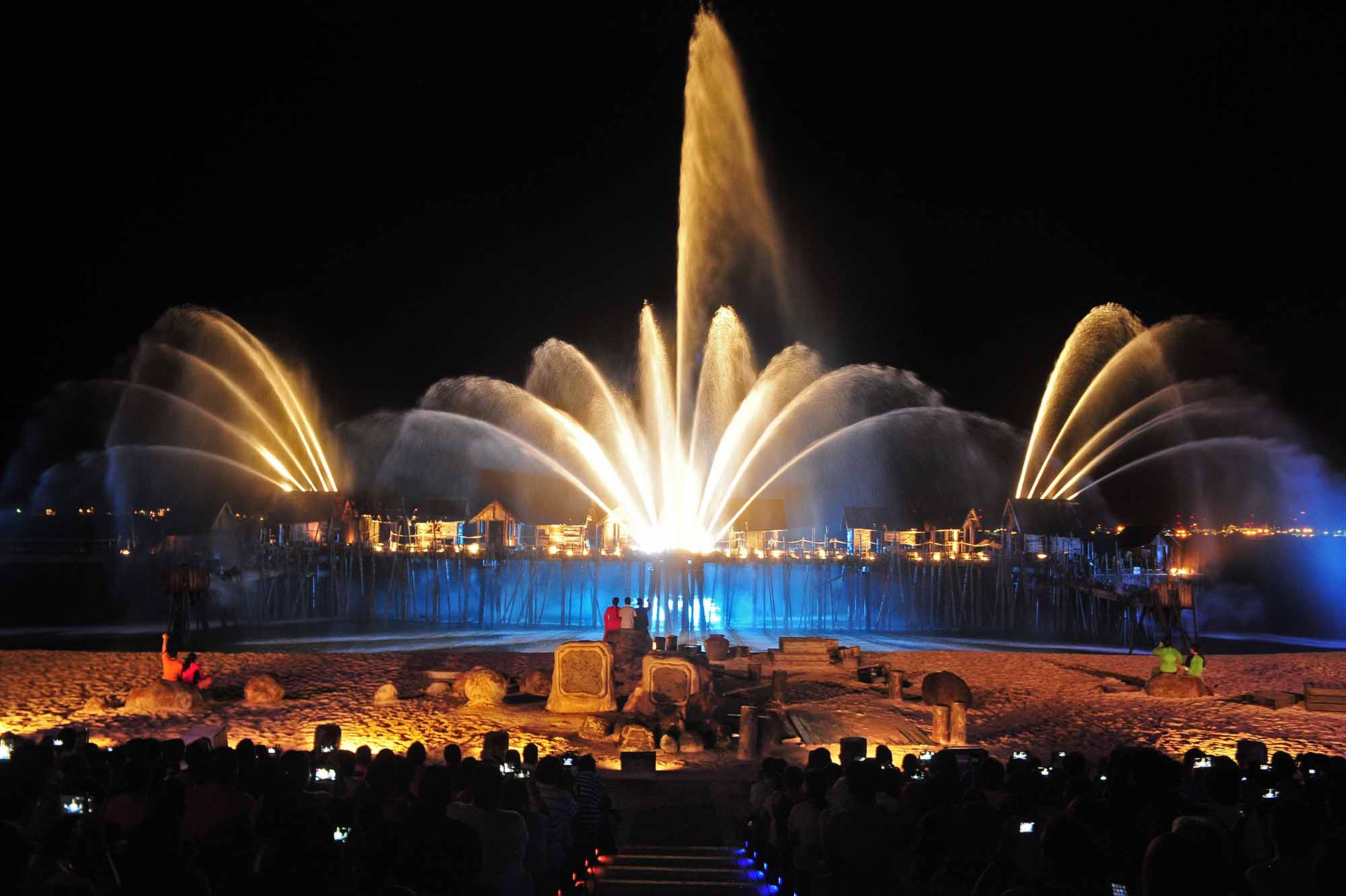 游客在新加坡圣淘沙西乐索海滩观看表演。 新华社发 邓智炜摄
