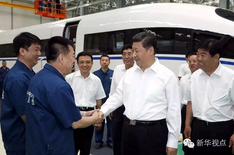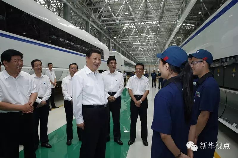 习近平说,高铁动车体现了中国装备制造业水平,在“走出去”“一带一路”建设方面也是“抢手货”,是一张亮丽的名片。
