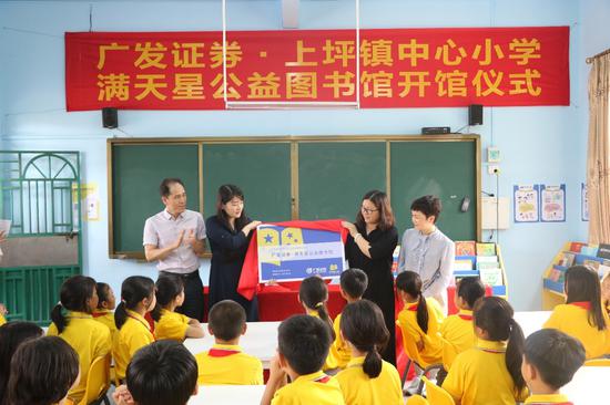 2021 年 5 月 19日,由广发证券捐建的“广发证券·满天星公益图书馆”在广东省河源市连平县上坪镇中心小学落成。一场简单又隆重的启动仪式,标志着图书馆面对全校12个班级超430名师生正式开放。
