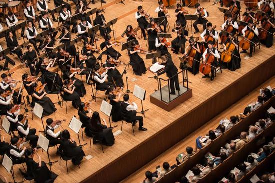 广青交是中国首个拥有“音乐季”的非职业青年交响乐团。图为第五个音乐季开幕音乐会现场