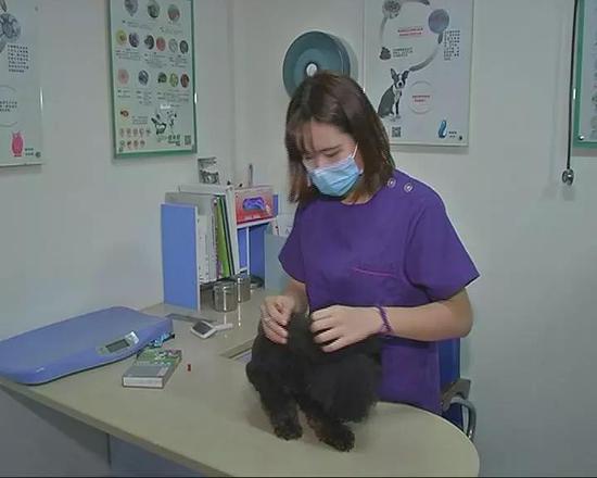 日前,记者来到市区一家动物医院,工作人员正在为一只宠物狗进行体外驱虫。