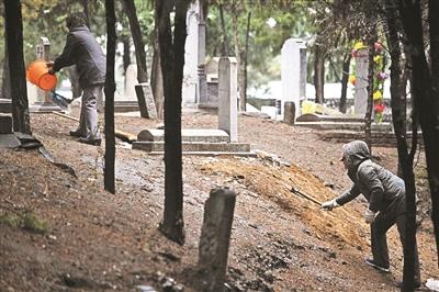 像这样的工作,除了清明节,王建生平日里每天都要进行,多的时候一天得修20余个。他说,这也算是给逝者一个交代。不过,也有一些墓碑因为地基下沉,整个墓体发生了偏移,好像无人打理。“这种情况我们不会轻易乱动,毕竟是墓体整体性地移动,一定要通过家属。业务科会对墓碑进行登记,通知逝者家属前来,我们才敢给人修。