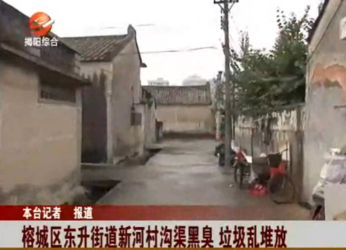 记者11月18日暗访发现榕城区东升街道新河村沟渠中漂浮物、杂物较多,水体黑臭,村里巷道中存在垃圾乱堆放现象。
