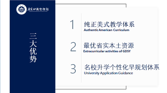 据省实AP历届录取数据显示,中考720分以上47.6%进入美国前30名校,中考700分以上92.5%进入美国前50名校,所有学生100%进入美国前100名校。今年的录取率在往年基础上再创新高,这得益于学校三大优势:纯正美式教学体系,最优省实本土资源,以及名校升学个性化早规划体系。