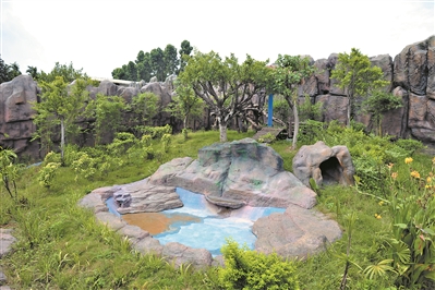 占地2000多平方米的熊猫馆分为两部分,主体是一座假山,园内配套齐全。 本组图片由广州日报全媒体记者卢政摄“从目前的情况来看,‘珍大’的适应能力较强。”饲养员刘桥说,“双儿”相对胆小一点,前几天还有点紧张。因此,如果你看到大熊猫欢蹦乱跳、表演欲强,那只便是“珍大”。