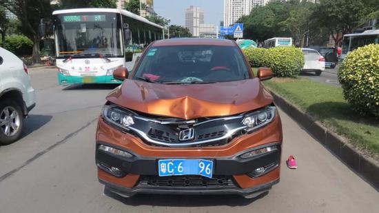 只见本田小车车头受到巨大冲击力,向内凹陷严重变形,前挡风玻璃呈蜘蛛网状裂开,一双玫红色的运动鞋东落一只西散一只。对事故现场进行勘查和拍照取证后,戚警官立即赶到拱北医院查看伤者情况。
