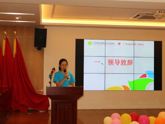 活动开始,嘉禾街道办事处郭主任为活动致辞,郭主任肯定了嘉禾社工十年的努力和成效,也提出了未来的期望,希望社工站继续发挥社工和志愿者的优势,扎根社区,服务社区。同时希望社工站继续加强与各社区居委会,各职能部门和辖区各单位的合作,做好服务宣传,增强社会效益。