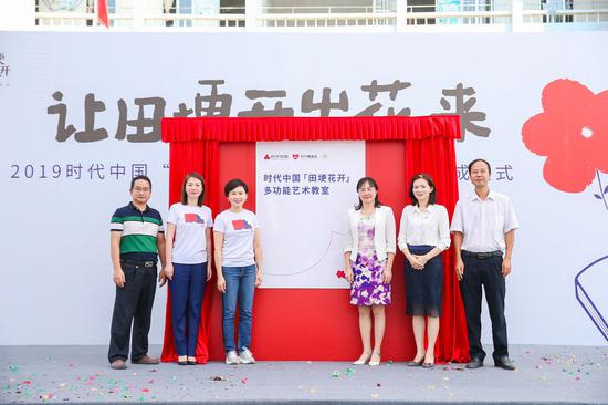 10月18日,时代中国“田埂花开”计划首间多功能艺术室在阳春市三甲镇中心小学三甲圩分校举行落成仪式,阳春市政府副市长何梅、市府办副主任黄昌容、共青团阳春市委书记蒙翠、阳春市教育局副局长徐丕威、阳春市三甲镇党委副书记刘早、共青团阳春市委副书记杨典岳、广东省教育厅体卫艺处专员王校中、广东省时代公益基金会创办人李一萍、广东省时代公益基金会理事长李玲玲等共同为多功能艺术室揭牌。现场三百多名师生共同见证了这一幕。