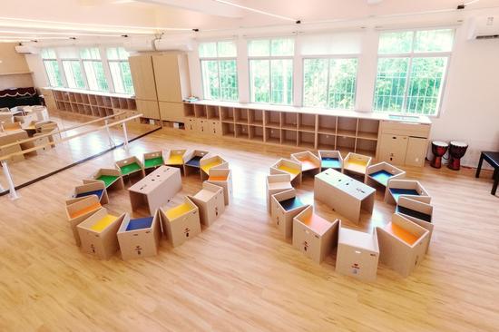 首间“田埂花开”多功能艺术室坐落在阳春市三甲镇中心小学三甲圩分校,由时代中国设计研发中心联合爱心设计团队原创设计打造,在同一空间可灵活切换成美术、音乐、舞蹈、合唱等功能模式,满足艺术教育的多种空间与物资需求。不同于一般儿童活动空间的色彩斑斓,“田埂花开”多功能艺术室有着浓郁的艺术氛围,也处处着力营造家一般温馨、温暖的感觉。