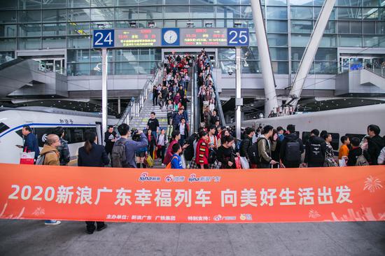 世界再大,也要回家过年。为助力粤港澳大湾区建设,解决外来务工者的购票难等问题,2020年1月15日,由新浪广东联合广铁集团共同发起的 “幸福列车——‘向美好生活出发’广西专列”D3616从广州南站启程直达南宁东站,全程约3小时,600余名广西籍来粤务工人员踏上了幸福回家之旅。
