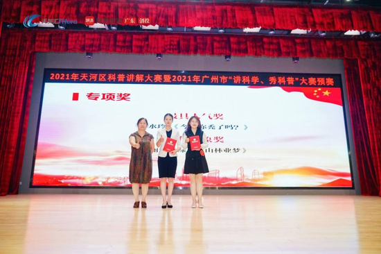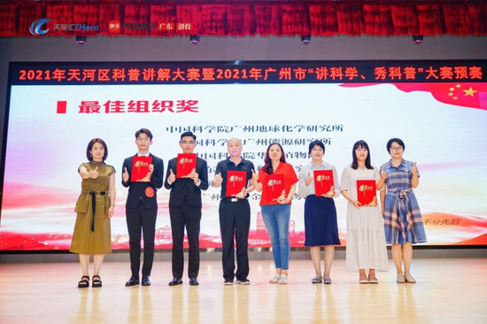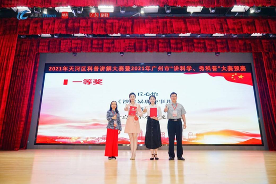 (“最佳组织奖”颁奖环节)经过激烈的角逐,最终由丘心怡、盛倩茹获得本届大赛的一等奖,边圆圆、杨熠荷、吴莹莹获得大赛的二等奖,焦开丽、周逸伦、冯静茹、何林松、刘清华获得大赛的三等奖,王燕、周炜雯、古旭雅等17位选手获得优秀奖!赛后,竞演评分排名前十的选手将代表天河区参与2021年广州市“讲科学、秀科普”大赛决赛。
