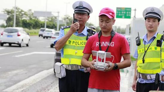 早上8点,金湾交警操控无人机在珠海大桥西缓缓升空,数百米的车流,任何一辆车打尖插队,都逃不过无人机的眼睛。