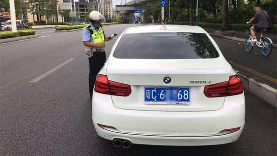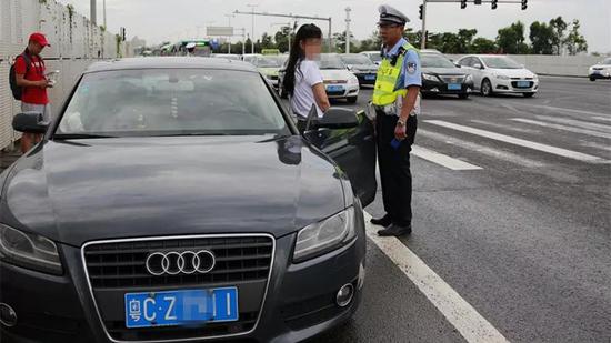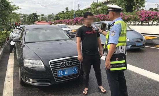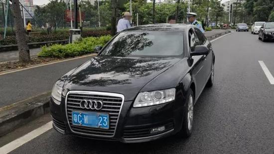 7点50分,一辆粤CW××23号黑色奥迪小车在人民西路见缝插针,成功插进右转到明珠路的车流中,廖警官见状,立即示意司机靠边停车。