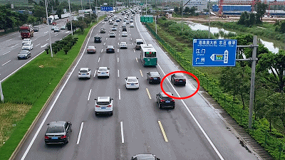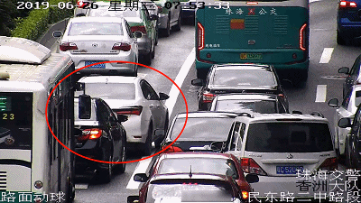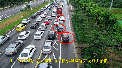 8点06分,粤CY××95号哈佛小车、粤CW××56号纳智捷小车、粤CM××69号五菱小车,依次从江珠高速路口前几百米的公交站附近快速打尖,插进了左侧车道行驶。无人机清楚地拍下了这一幕,龚警官立即在前方路口将三辆车拦截下来。