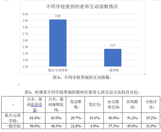 3、学校层面上,重点/示范学校老师的互动形式显著高于一般学校老师的使用。