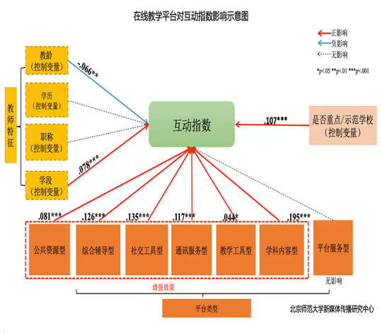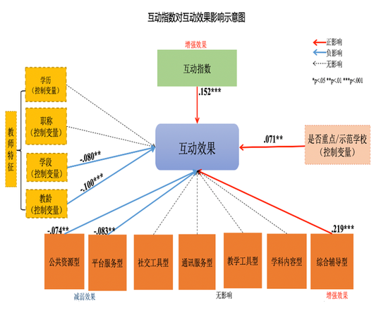 第二从学校情况分析,重点/示范学校对互动效果有显著的正向影响,学校越是重点/示范学校,互动效果越好;
