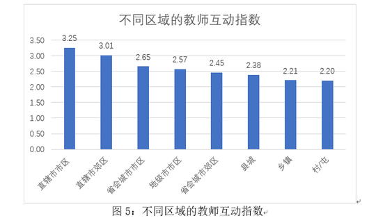 3。直辖市区的教师互动指数最高,与镇、村差异显著