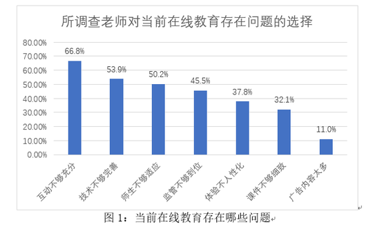 1、对当前在线教育存在的问题,所调查老师们反映最多的问题是互动不够充分,说明了线上互动的重要性。