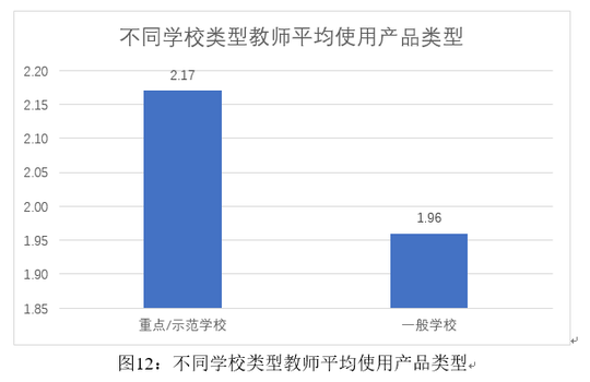 3。重点/示范校教师使用产品类型丰富度高于一般学校教师