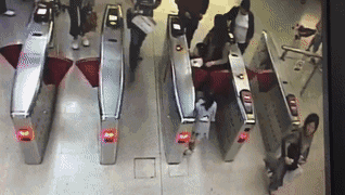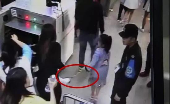 在爸爸刷卡后,因老大自行奔跑过闸导致闸门关闭,而被安全绳拖拽的老二头部直接碰撞到闸门。因为这家人只买了两张地铁票,最后男孩子只能在闸门下钻过,而爸爸则跟着别的乘客进了闸门。
