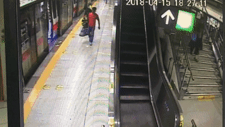 4月15日深圳地铁1号线华侨城站上演惊险一幕