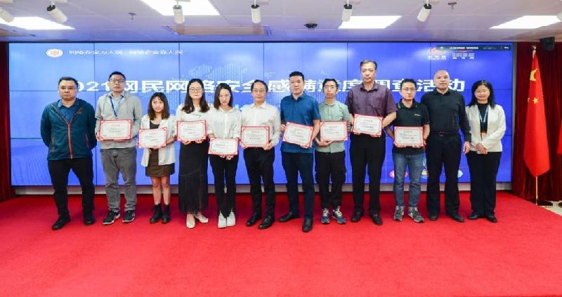 在发布会现场,组委会还对2021广东网民网络安全感满意度调查活动作出突出贡献的发起单位、支持单位及个人进行表彰。在2021调查活动中,他们采取有力方式让活动影响力扩散到全省多个网点,采取多样化形式传播和推广调查活动,让调查问卷渗透到不同领域,让调查结果更加客观全面且真实。