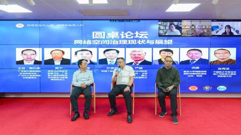 在圆桌论坛环节,中国工程院院士方滨兴,调查活动组委会主任严明,广州市公安局网监分局原局长蒋兆明,公安部三所法律研究中心主任黄道丽,复旦大学网络空间国际治理研究基地主任沈逸,广东新兴国家网络安全和信息化发展研究院总工高宁,青少年网络安全及媒体素养教育研究中心主任张海波,以“网络空间治理现状与展望”主题,畅谈网络空间安全治理的路径、方向及未来。