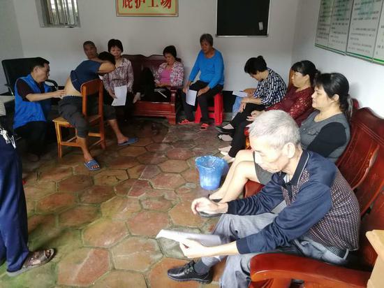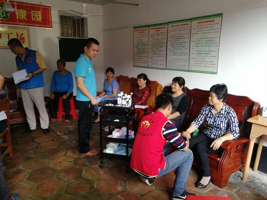 11月12日下午,义诊正式开展,下午来的村民并不少,小小的义诊场地顿时显得拥挤了许多。