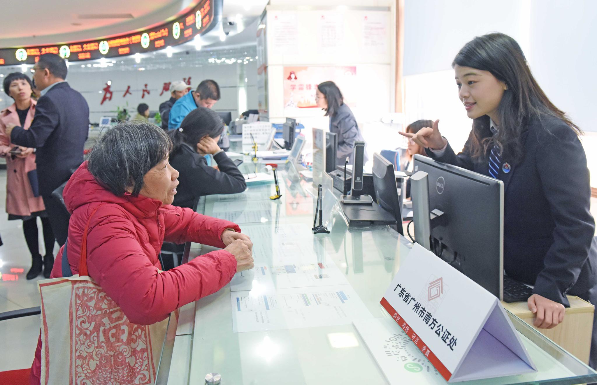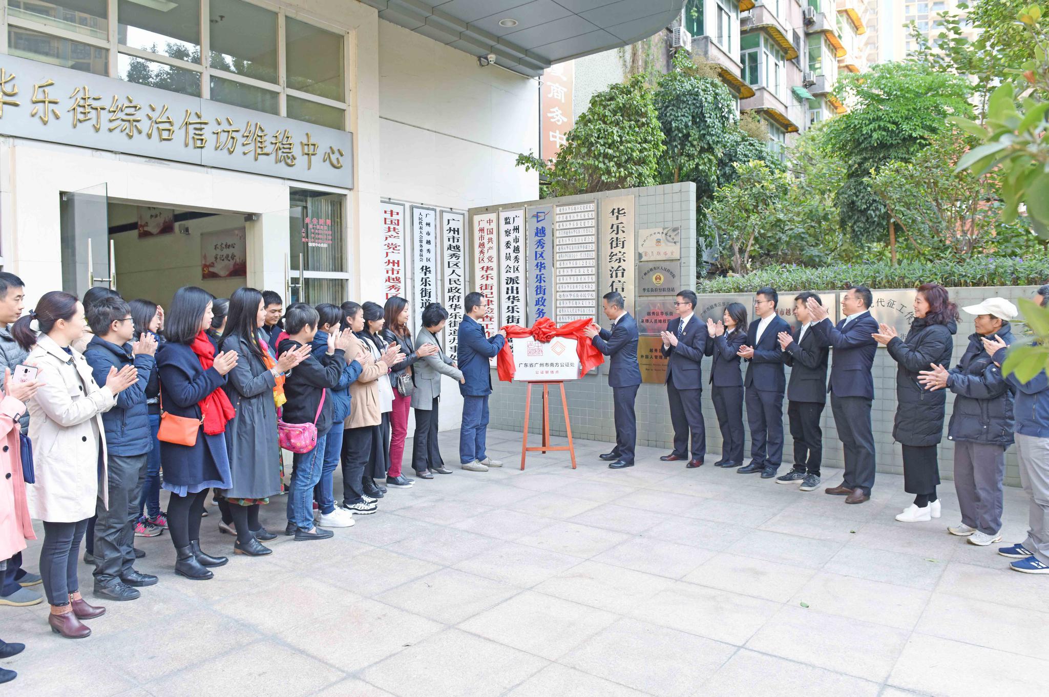 2019年12月6日上午,南方公证处公证联络点挂牌仪式在广州市越秀区华乐街政务服务中心举行。在双方代表和街道群众的热烈掌声中,南方公证处副主任曾育生与华乐街道办事处主任李劲共同为联络点揭牌,这是广东首家引进公证机构为居民提供公证服务的街道政务中心。