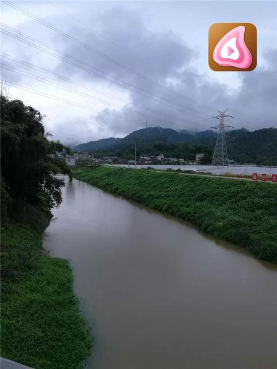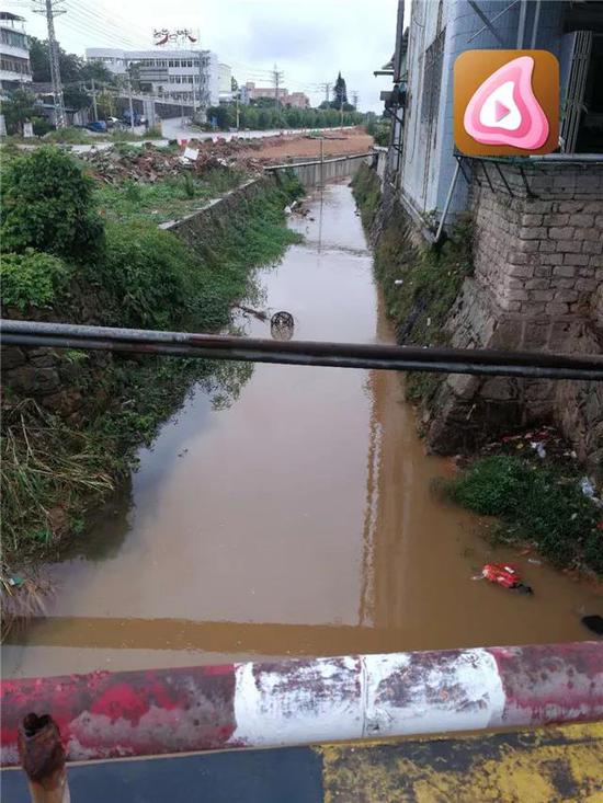 排查中发现,“文祠水”河道水体呈黄色山洪水。