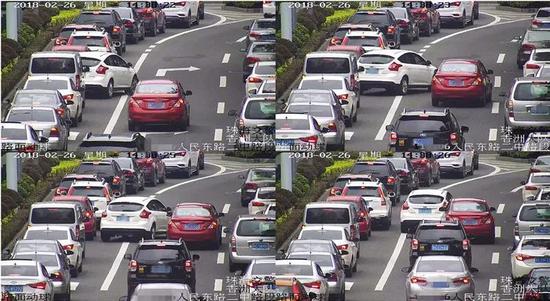 首先,无人机航拍,站位高,覆盖面广,不仅路口,路段中间的插队打尖也能拍得到;▼