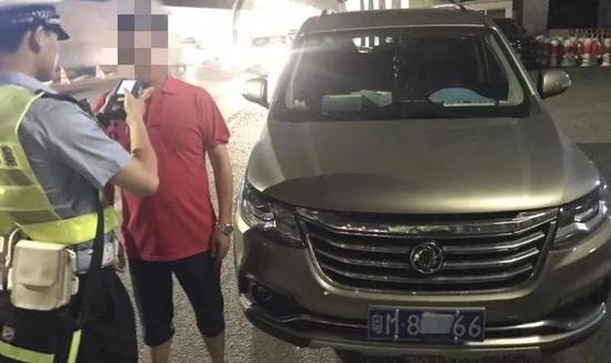 车窗刚摇下,一名蓝色上衣的男子态度诚恳地向古警官表示歉意,还自称是老师,话语间传来阵阵酒气。