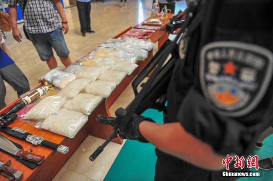 资料图:公安机关展示缴获的毒品及作案工具。中新社记者 于海洋 摄