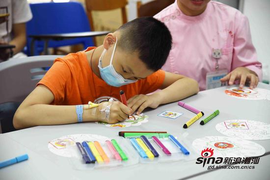 当天,汕头市金丝带慈善会义工的到来,给孩子们打开了一片新的世界。为了能让孩子们放松心情,义工们提前准备了彩色画笔和涂色卡,用短短的一个小时陪伴他们画画,给病中的他们带了一份温暖。