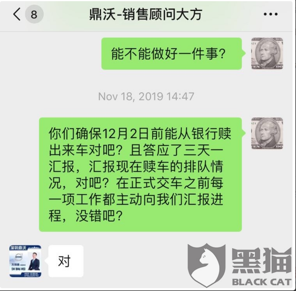 12月1日,深圳一网友在黑猫投诉广东站反馈称,他于今年10月12日,在鼎沃汽车销售公司一次性付款36万元,购买了一台沃尔沃XC60型汽车。工作人员称18个工作日内可以给出合格证,但至今未收到。网友的深圳车牌号指标也将于1月中旬过期,但多次催促均无果。“我们现共有18名类似遭遇的消费者一起维权,他们销售没有合格证产品是违法的”网友希望能尽快拿到合格证。后续进展,我们将持续关注。 投诉详情