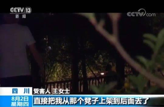 他突然把我脖子绑着,那时候出不了气,直接把我从凳子上驾到后面去了。我有点害怕,有点想哭。
