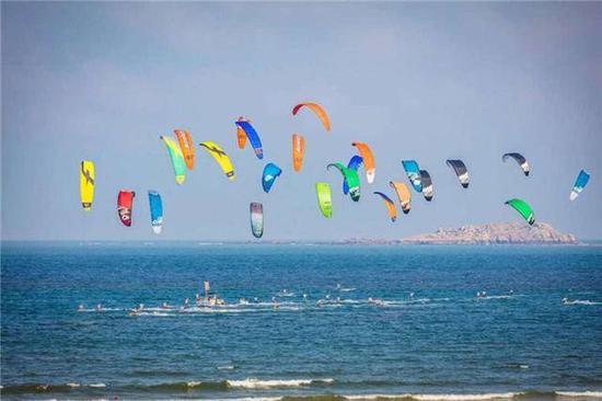 风筝板,进入新世纪后便已经风靡全球。这项时尚运动的原理很简单,风筝在空中获取风的能量,通过高强度绳索传递给运动员,运动员利用风能脚踩冲浪板完成在水面的滑行,同时通过变换风筝姿态来获取额外动力来完成跳跃。这项运动操作简单,刺激且安全系数高,受到了广大海洋运动爱好者的喜欢。这次比赛吸引了上千名游客前来观看。