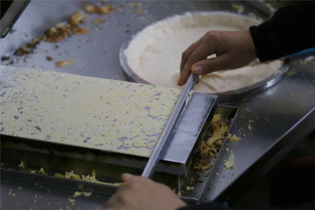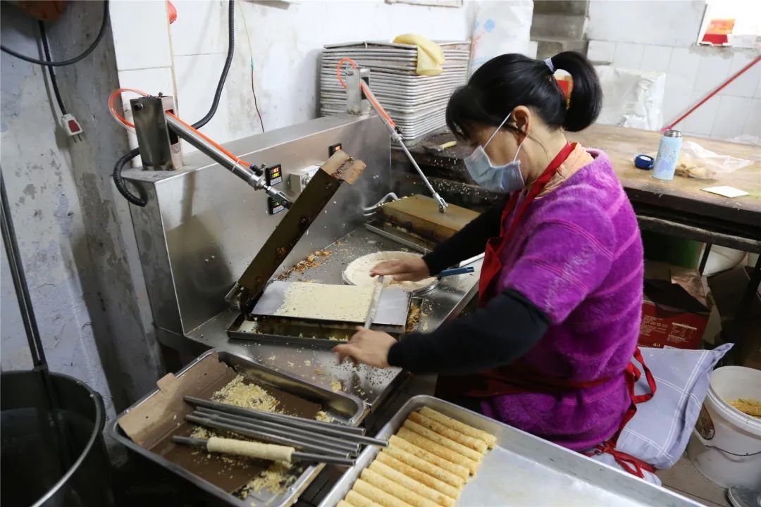 魅力姐看到,梁姐一人操控两台机器,功力可见一斑!原来,梁姐在此经营饼铺已经有二十余年了,现在她一天都做蛋卷100斤。除了卷蛋卷外,她还要照看店铺的生意,而她的丈夫则在工场负责批量生产。