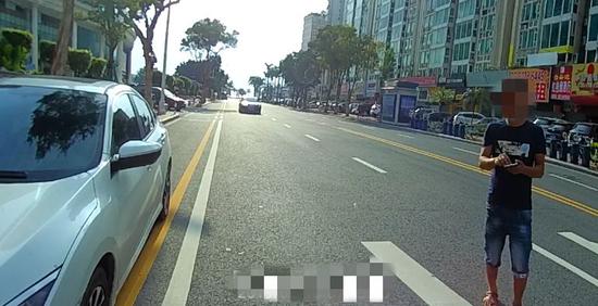 思域小车停在吉大路东往西方向自行车道上,车上没有司机,交警拍照取证,准备进行处罚。这时,对面马路一名身穿黑色短袖的男子匆匆赶来,说他就在对面便利店买烟买水而已,马上就离开。▼