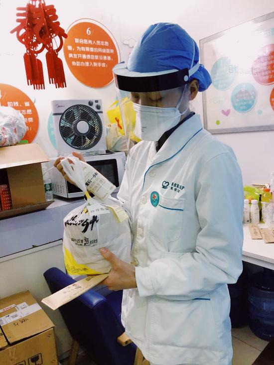 “疫情发生以来,穿上防护服、口罩等已成为工作日常,平均每天至少要穿10-12小时,穿上以后就不能脱”,一位守护天使爱心餐供应的广州定点医院医护人员说到。据了解,现在疫情定点医院的医护人员工作量还是挺大的,公众关心的吃饭问题,现在也陆续得到稳定的供应,不过还是有少量的一线医护,吃饭都是要等到工作结束后,换下防护服、口罩等才能坐下来吃饭,虽然那个时候饭菜可能不是热腾腾的,但医院后勤都为他们提供了微波炉,医护可以自行加热吃上一顿温暖的爱心餐。当被问道“大家现在感觉怎么样”时,不少医护人员表示,“我们现在都挺好的,特别是每天守护天使项目供应的爱心餐,每天的菜色都不一样,还有热汤,我们心里都挺感动的,谢谢大家对我们的关心,有大家的鼓励,我们会一直坚守岗位”。 (通讯员 刘臻)