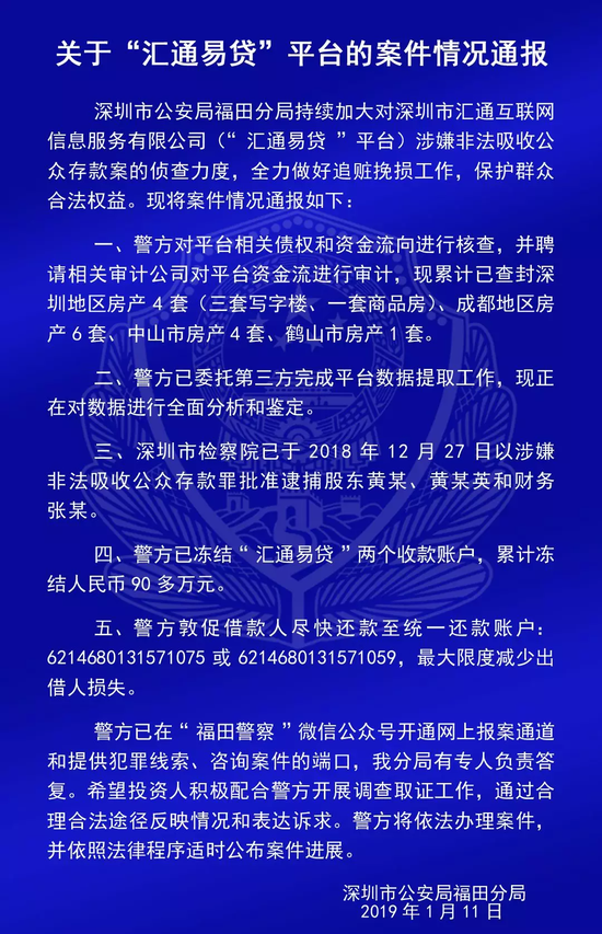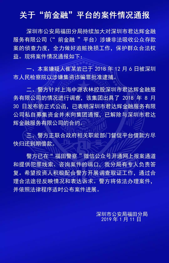 福田公安通报:6家平台涉嫌非法吸收公众存款