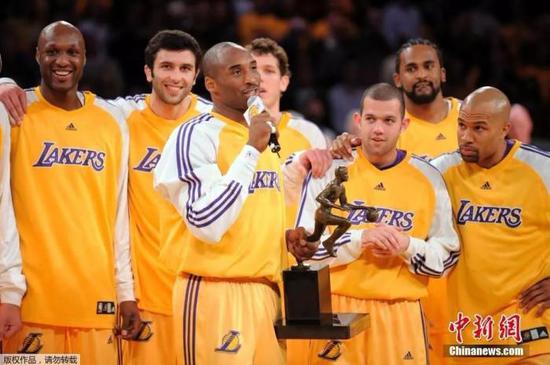 资料图:2010年,湖人队击败凯尔特人,以4-3的大比分卫冕总冠军,科比首获个人职业生涯第五个总冠军。在这一年,科比成为了湖人队的得分王。一生紫金:商业社会的忠诚战士