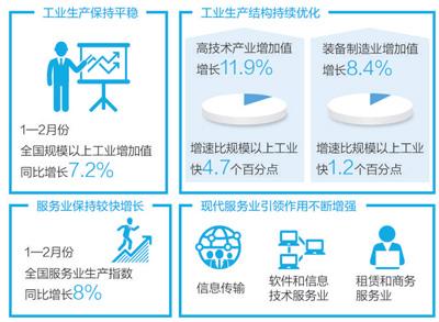 1—2月份,规上工业增加值同比增7.2%,规上服务业营收同比增14.1%
