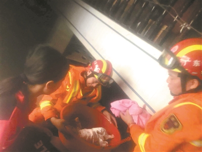 暴雨遇险网友微博留言求助 消防搭人梯救半月大男婴
