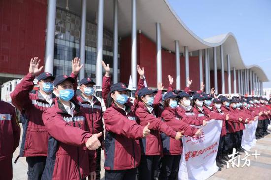 17日下午,武汉东西湖方舱医院门口的广场上举行了简短的欢送仪式,来自上海、广东、江苏、辽宁、等地的十几支国家紧急医学救援队将陆续踏上返程。