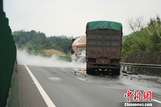 广西两车追尾致危化品泄漏 高速路交通中断超24小时