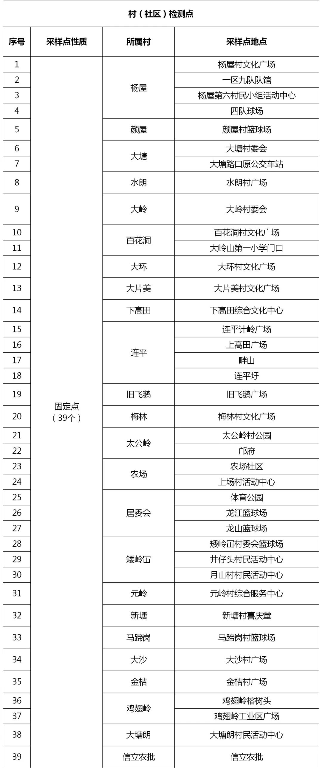 二、检测地点:以村(社区)为单位设置检测点,选择就近临时检测点检测。