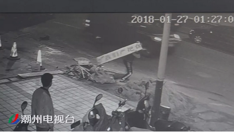 事件发生在1月27日凌晨1点多,当时在饶平黄冈镇一家音乐酒吧前,两辆汽车当街追赶、互撞,随后多名男子手持木棍、钢管等追上去打砸。