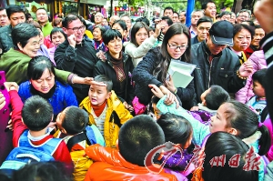 在家长的一片质疑声中,广州铁路一小昨 起实施放学接送新规定,将交接点从操场挪至校门外,原意为了校园安全的新措施,结果带来了车祸、拐带等更大隐忧:一车道的共和大街水泄不通,喇叭声喊声哭 声混杂,小孩找家长,家长找小孩,数百上千人涌入挤出,挤爆不过100平方米的校外路面。