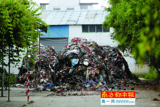 黄 先生在石碁镇官涌村勒仔围工业区上班,昨日早上7时,他发现每天上班必经的路边多出了四座3、4米高的“垃圾山”。“5米之外就闻到酸臭味了,走近了想 吐”,黄先生说,“垃圾山”里均为生活垃圾,靠着厂区外墙胡乱堆放,污水从垃圾堆底部渗出,成群的苍蝇围着乱飞,在高温炙烤下,发出刺鼻的臭味。